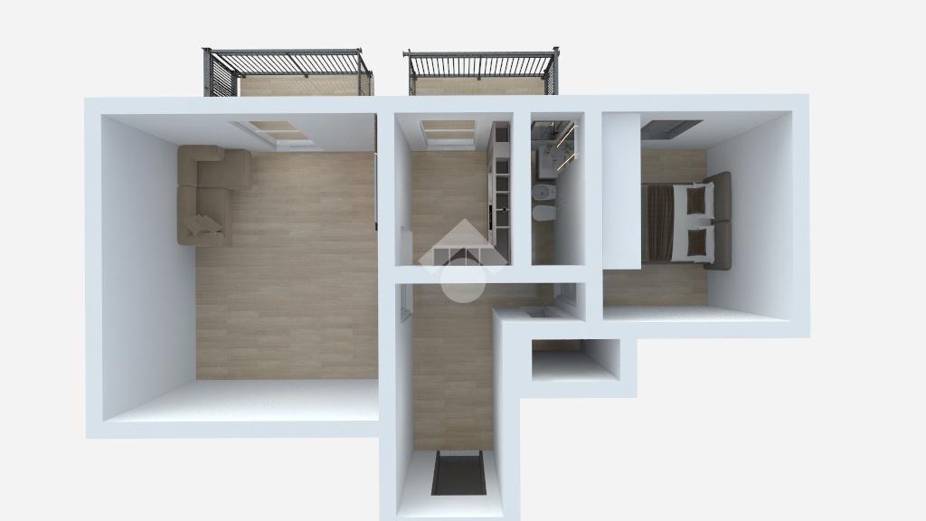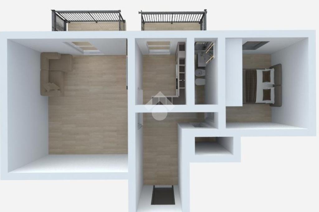 La casa si presenta luminosa e ben disimpegnata, con un ingresso su disimpegno, cucina soggiorno, camera da letto, bagno, ripostiglio e due balconi.