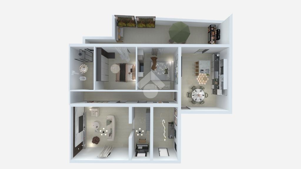 Proponiamo appartamento al piano rialzato con ingresso indipendente composto da una grande zona giorno con cucina e salone, un corridoio di disimpegno due camere da letto e un ripostiglio.