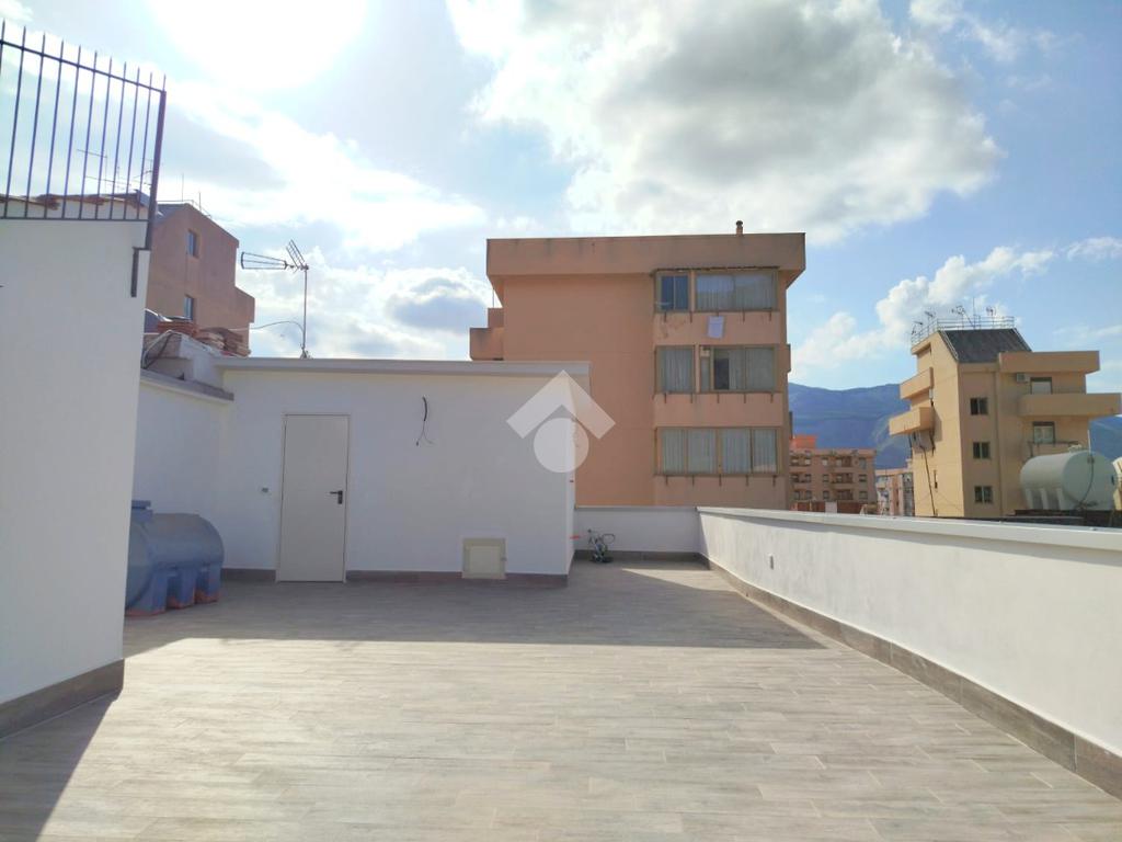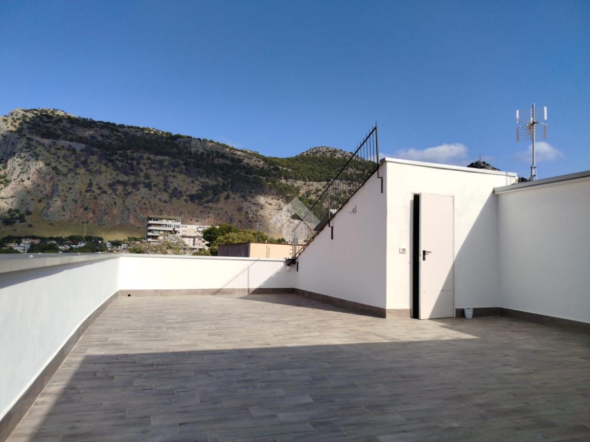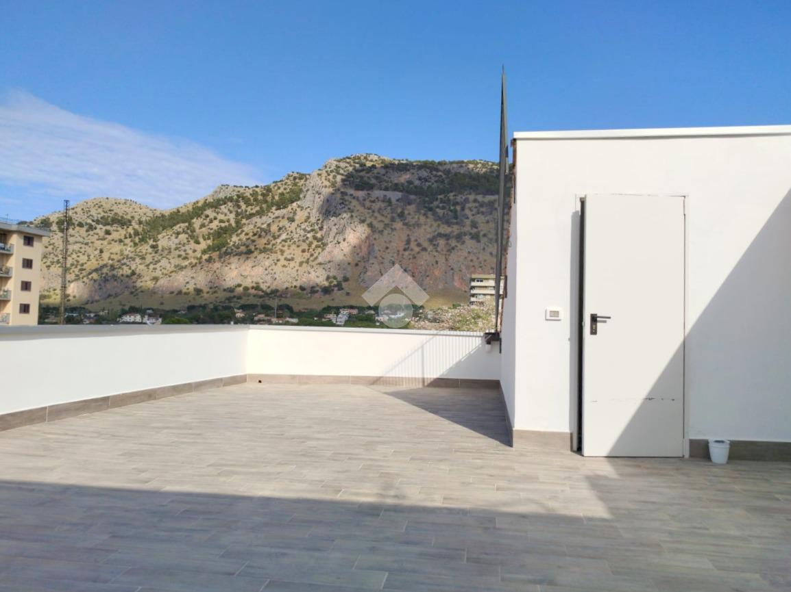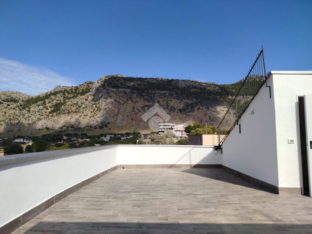 L'ingresso si apre con un grande open space che comprende salone, cucina e zona pranzo, illuminato da ampie finestre ed un balcone verandato. La zona notte comprende una camera da letto con balcone con una gradevole vista su Montepellegrino ed una camera singola, oltre al bagno ristrutturato con piastrelle e sanitari di ottima qualità.