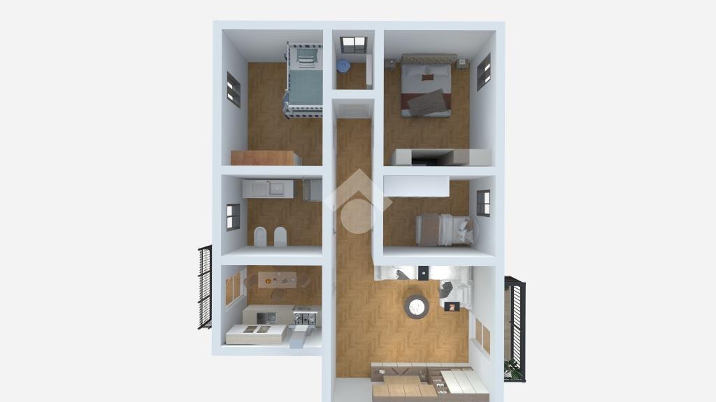 La zona giorno comprende salotto e cucina abitabile, mentre un disimpegno conduce alla zona notte dove sono presenti 2 camere da letto, una camera singola, un bagno e ripostiglio.